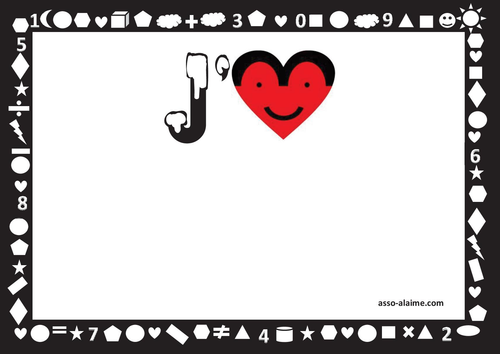 Voici ci-dessous une sorte de mandala, avec le logo en forme de coeur représentant l'association ALAIME, à compléter en dessinant ou écrivant ce ou ceux que l'on aime. Les dessins du cadre sont à colorier. Des cartes postales viennent d'être imprimées et seront bientôt disponibles (lorsqu'un canal de distribution sera trouvé).D'autres produits dérivés seront également proposés.